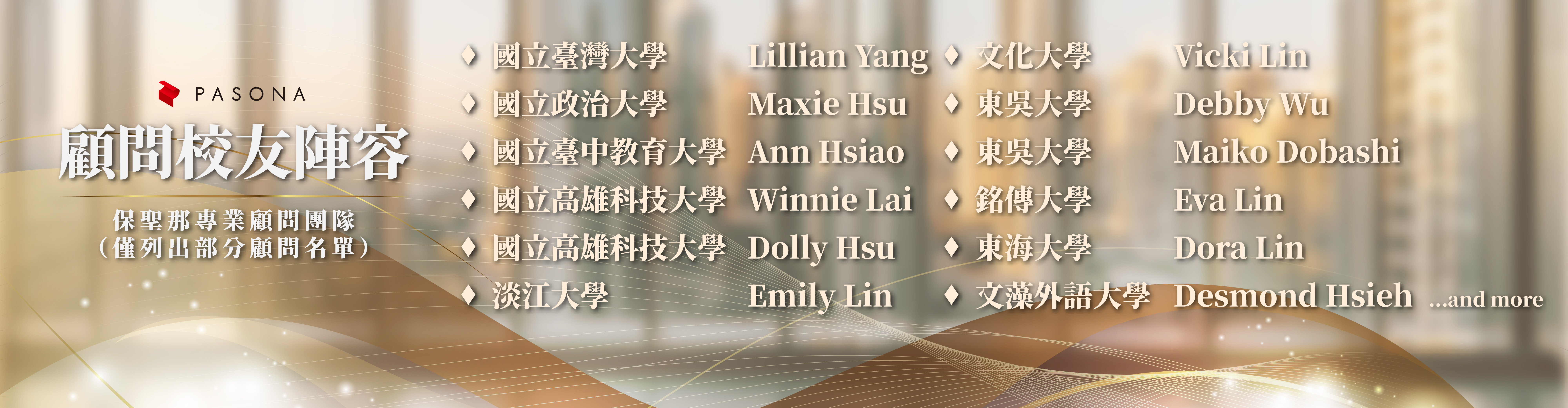 以下僅列出部分顧問成員名單及其畢業學校供您參考。